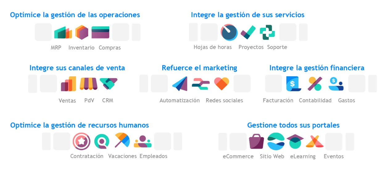 Compras, RRHH, Finanzas, Proyectos, Ventas, MRP, Etc.